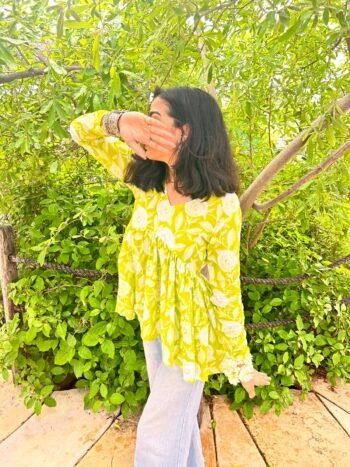 Green Handblock Cotton Kurti – Bijjiya Collection