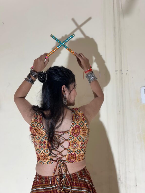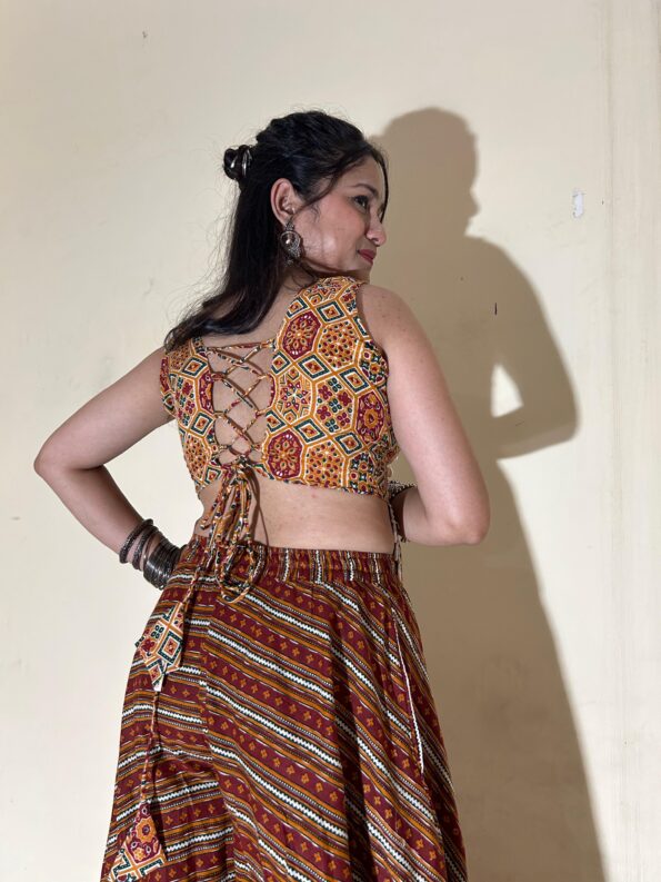 Navratri in style with this elegant Jaipur-inspired double set Dandiya outfit. Designed with vibrant colors, traditional prints, and comfortable fabric, it perfectly blends Rajasthani charm with festive vibes. The matching double set ensures a complete ethnic look for Garba and Dandiya nights, making you stand out with grace and energy.