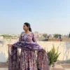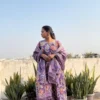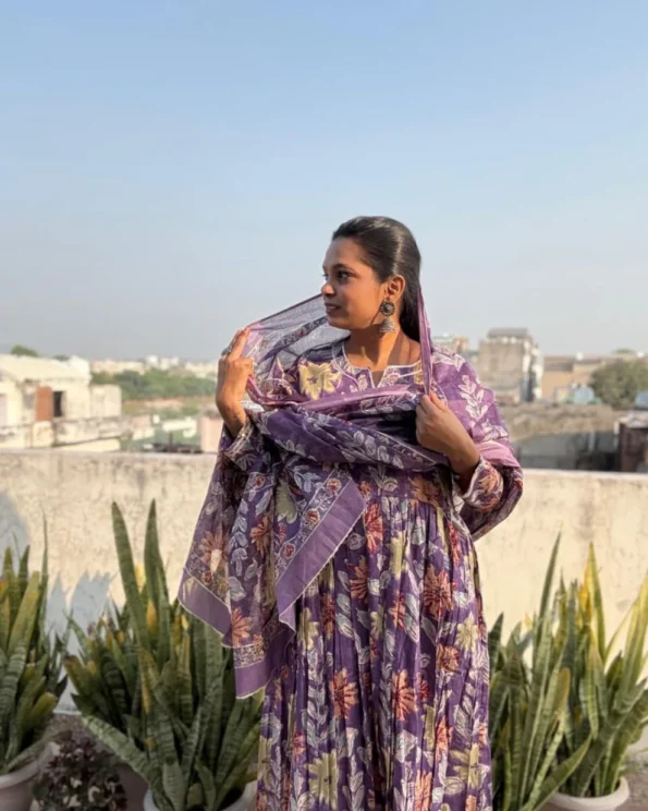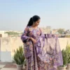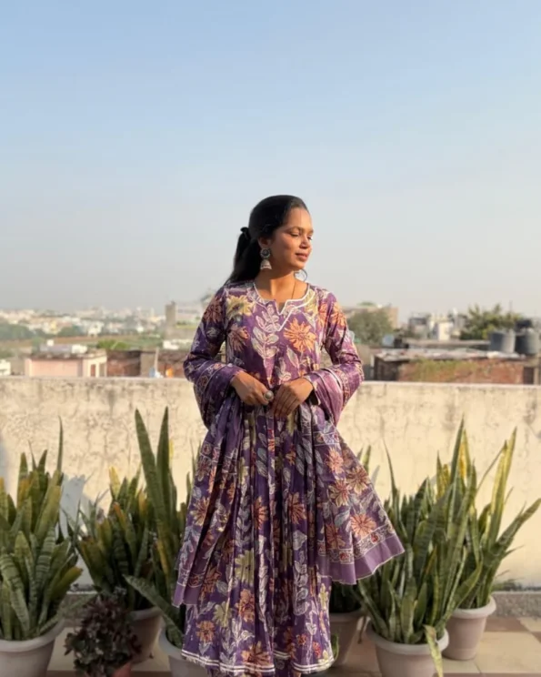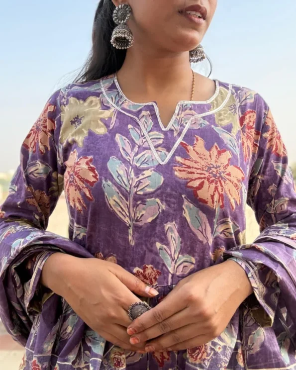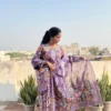 Purple colour cotton suit with cotton dupatta