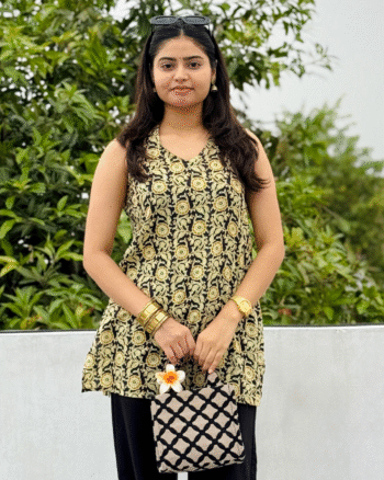 Soft cotton handblock kurti from our Bijiya collection – lightweight and perfect for everyday comfort.