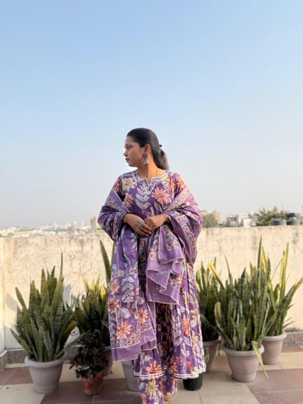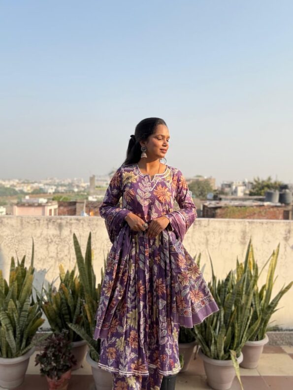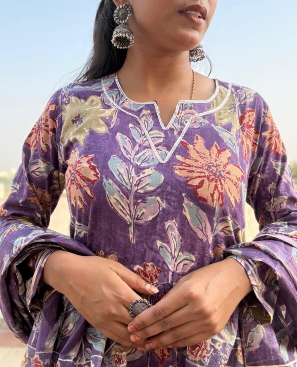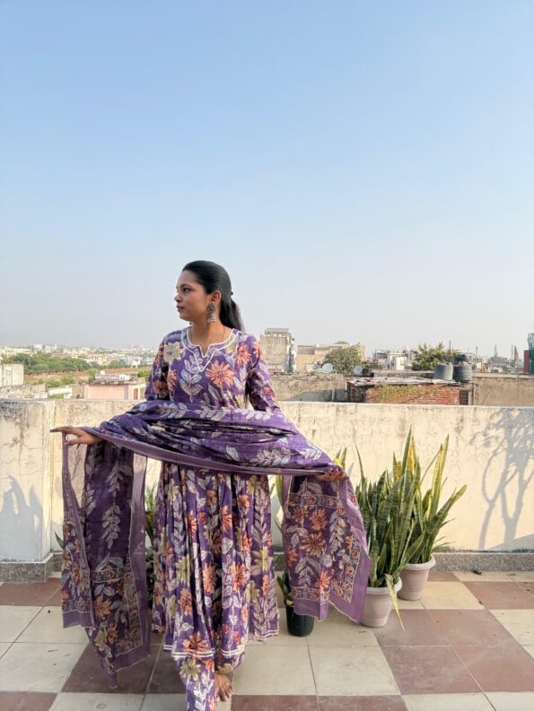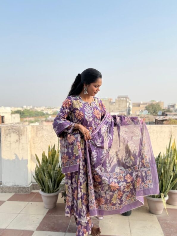 Discover the timeless charm of ethnic wear with this beautifully crafted purple cotton suit set, designed to bring together comfort, style, and tradition in one elegant package. Whether you’re dressing up for a casual day out or a festive celebration, this suit promises to keep you looking graceful while feeling comfortable throughout the day.